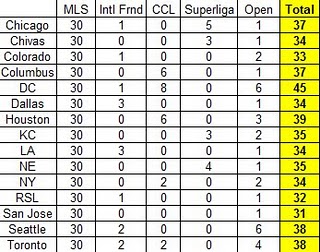 I wrote a couple of weeks ago that DC United will play more matches than any other MLS team this season. I figured it wouldn't be a bad idea to back that up with some numbers: