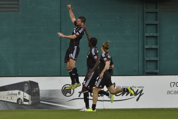 Another intricately built up move from United nearly resulted in a second goal in the 41st minute. After a long spell of possession, Pontius played to Franklin, who quickly returned the favor. Franklin kept his run going, and Pontius got the ball out wide, but Franklin's cross was just behind a wide open Chris Rolfe at the far post.