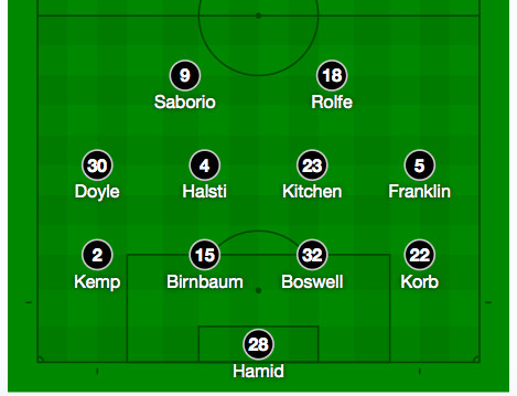 That said, there are two certainties that one could say when it comes to things that occur in 21 months: D.C. United’s outlook has improved to the point where Korb would not have to be leaned on nearly as much, and Korb isn’t going to be the same Korb, shinpads aside. On the latter, he was down in most every offensive metric WhoScored charts (Passing Accuracy, Shots per Game and Key Passes were all at career lows), he saw the ball fewer times and did less with it to boot. Defensively his tackles and interceptions were each less than half per game than his career worst as well. Korb may have been back, but he wasn’t really back. On the former, here’s the starting XI from that 2015 game: