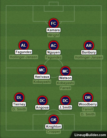 Teal Bunbury has been largely unable to increase his share of the attacking minutes, but with Rowe and Agudelo away with the USMNT he should see some starts. Most likely, that means getting the nod on the right wing (or as the other forward if the 4132 or diamond are used instead). Heaps could also go with sparkplug Femi Hollinger-Janzen, who is usually seen bringing a ton of energy and a knack for making things happen off the bench.