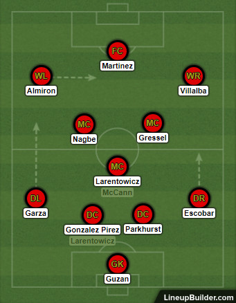 It’s a major risk, because it would count on Nagbe providing defensive cover that he simply never has at any point in his career (there’s a reason he’s so often been played out wide). Escobar appears to be more of an attacking defender than the kind of player who suits a back three, and Gressel is not at all a wingback. However, Martino may view the plus side as worth this major role of the dice, because there’s not much evidence that United can possess at length. Last week, for example, United couldn’t even string possession together against 10 men.