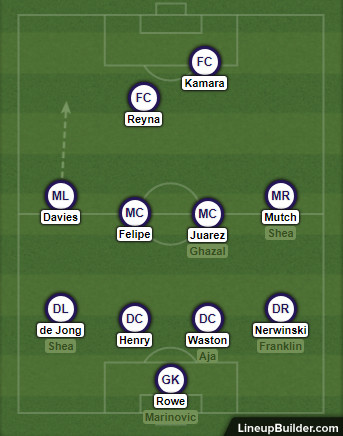 Jakob Nerwinski has largely been the starter at right back, but Sean Franklin has started 2 of the last 6 and has 6 starts overall, so it’s not a fully settled question. Nerwinski is faster and more energetic, but we might see a motivated Franklin trying to put one over on his old team.