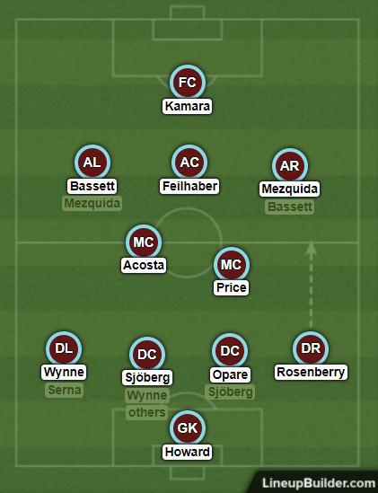 There’s a significant one, and it hinges on the health of Diego Rubio, who has a back issue that makes his availability a question mark. If the Chilean is healthy to start, Hudson might ditch this 4231 for a 442 diamond, with Bassett and Acosta the shuttlers, Feilhaber at one point of the diamond or the other, and the choice really being Price or Mezquida making way for Rubio. The style of play won’t change, but the emphasis on being narrow (Colorado is among the most narrow teams in MLS) only goes up.