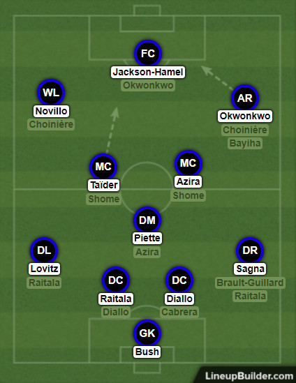 Garde’s doubts about Jackson-Hamel might mean Okwonkwo playing through the middle, which will give them speed in that spot either way.