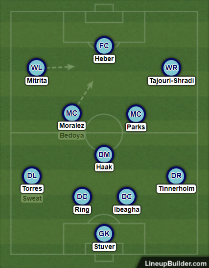They have 15 field players available, but their real shortages are in the back and in the midfield. On the attacking side, regulars like Valentin Castellanos and Jesus Medina should be available. Both will bring speed, though Castellanos is a bit more one-dimensional than Heber as a center forward. Medina has never quite looked comfortable in MLS, but he did just score last week, so his confidence might be on the up.
