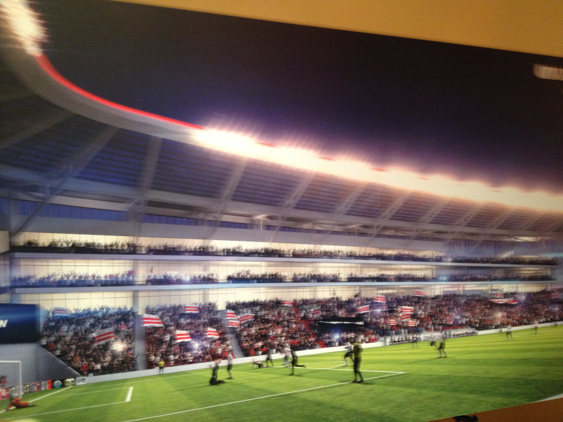 Also announced as part of this news is the fact that Populous has been selected as the architecture firm for the stadium project. HKS Architects was the firm that provided the original renderings that received so much buzz, but Populous is a firm with experience in designing MLS stadiums. The firm designed BBVA Compass Stadium for the Houston Dynamo, constructed at a cost of $95 million; Dick's Sporting Goods Park for the Colorado Rapids, constructed at a cost of $131 million; and Sporting Park for Sporting Kansas City, constructed at a cost of $200 million. The firm is also designing the new stadium for Orlando City Soccer Club, as well as having designed soccer stadiums in England, Portugal, Mexico, France, and others. UPDATE: Team officials wanted to stress that Populous only designed these renderings; however, no contracts have been signed.