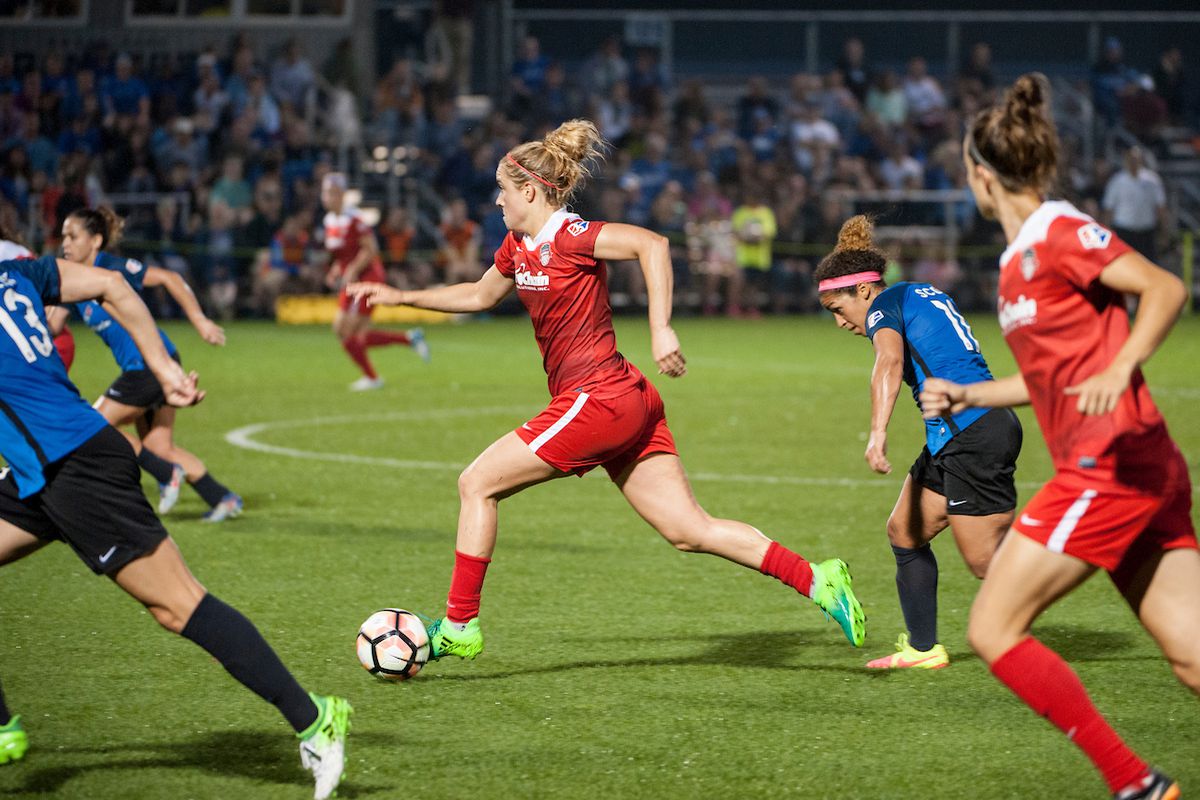 The Spirit have had some trouble starting games off at their best this year, but things looked bright initially thanks to a 4th minute goal from Mewis. A Spirit corner fell into the mixer, with neither team able to get a clear touch on the ball. Following a scramble, the ball popped loose to Mewis - who had taken the initial corner kick - and she fired a low shot through traffic and in to give Washington an early lead.