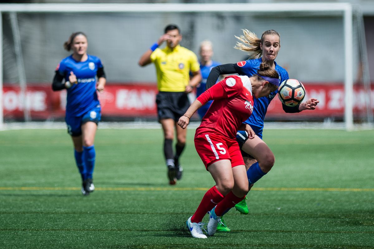 Sky Blue had taken charge of the game as the half wore on, and they turned that into a lead in the 43rd minute. Hayes won a header from a Haracic goal kick, with Kerr getting the loose ball and muscling Kassey Kallman aside. Kerr set the sprinting Hayes up, but Haracic came out in time to prevent a shot. Unfortunately, she was injured in the resulting collision, and even though Shelina Zadorsky blocked Kerr’s resulting shot, the ball bounced back to Hayes, who fired into the empty net.